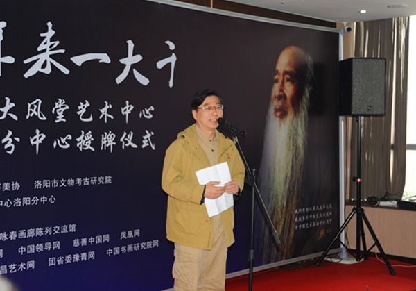 屠際春主任為洛陽分中心授牌,中心副主任、上海海上水墨畫院常務(wù)副院長沈虎作了題為張大千藝術(shù)之傳承與創(chuàng)新探索的主題演講。儀式上宣布上海張大千大風(fēng)堂藝術(shù)中心洛陽分中心和書畫家聯(lián)誼會(huì)主任由王瑞峰先生擔(dān)任。